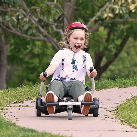 In minutes you can attach the Hoverkart Frame which comes with a sports racing bucket seat and you now have a mean racing machine you can hours of fun on.