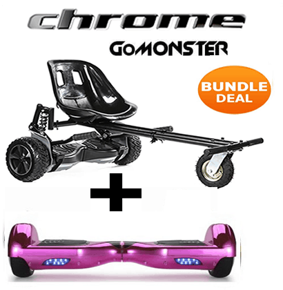 This Monster Racer Bundle comes with A Official UK Segboards 6.5″ Chrome Segway Hoverboard, a FREE built-in speaker with Bluetooth enabled for music streaming + Remote + Carry Case AND the Racer Hoverkart All Included!