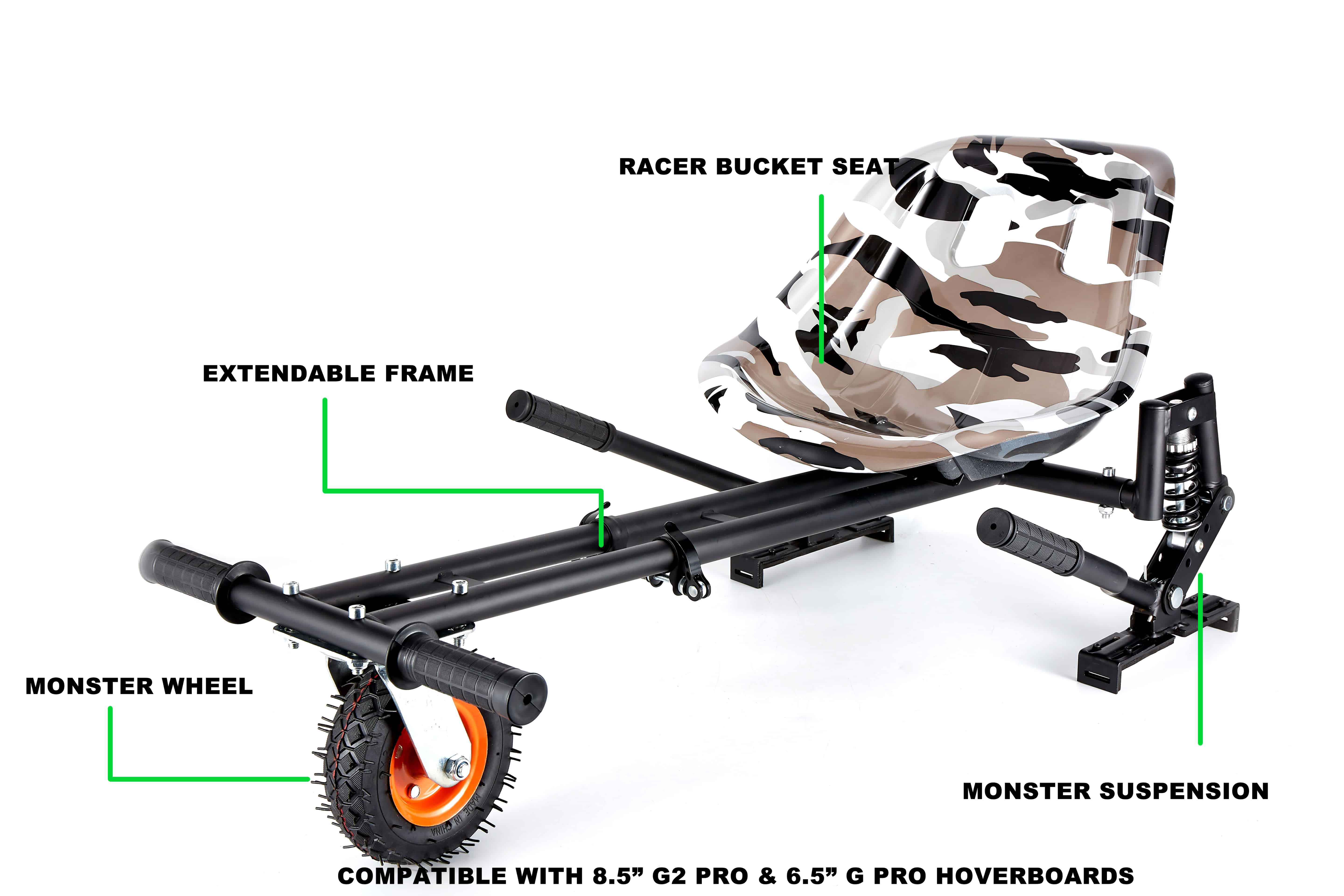 Transform your Segway Hoverboard into a exciting go kart with this hoverkart, allowing you to easily attach your 6.5inch / 8inch / 8.5inch and 10inch boards directly to the hoverkart and race around within seconds.