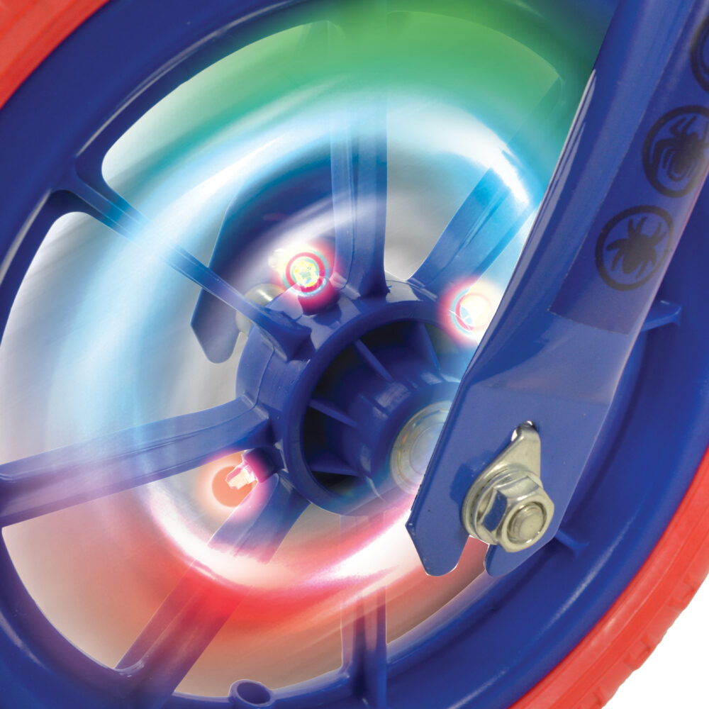 Let your little hero race into adventure with this officially licensed Spider-Man balance bike! Featuring motion-activated, multi-coloured light-up wheels, a sturdy steel frame, and puncture-proof EVA tyres, it’s built for safe, smooth rides. Adjustable handlebar and seat heights grow with your child (ages 2+), while soft grips and wide treaded wheels ensure comfort and stability. EN71 tested and CE UKCA compliant — perfect for inspiring balance, coordination, and outdoor fun!
