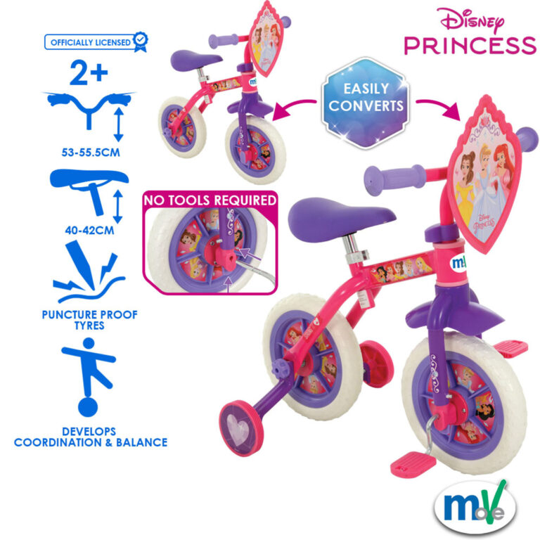 Ready to ride off into a magical adventure? The Disney Princess 10″ 2-in-1 Bike is more than just a bike – it’s the start of her next fairy tale.